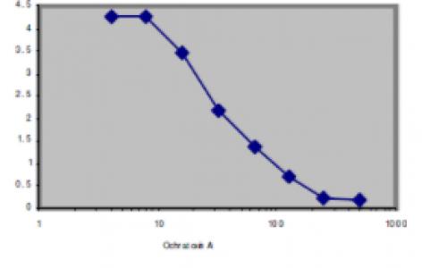赭曲霉毒素 A( Ochratox in A, OTA) 是由曲霉屬和青霉屬的某些菌種產(chǎn)生的有毒代謝產(chǎn)物, 是一種具有強(qiáng)腎臟毒和肝臟毒的真菌毒素,并有致畸、致突變和致癌作用。OTA廣泛存在于各種食物中,可污染糧食谷物、蔬果、調(diào)味料、咖啡、啤酒、葡萄酒及干果等多種農(nóng)作物和食品,嚴(yán)重危害人體健康。