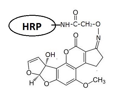 Aflatoxin M1 methylcarboxyloxime linked to HRP via amine acylation. AFB1/HRP molar ratio:1:1