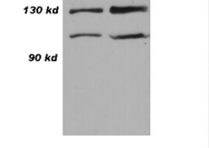 Western blot analysis of HeLa cell lysate 10 μg (left) and 30 μg (right) with CN0830.