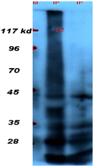 Left: Mouse spleen lysate treated with complete adjuvant Right: Mouse spleen lysate without any treatment Detection: Phospho-tyrosine antibody, HRP (ICP9902)