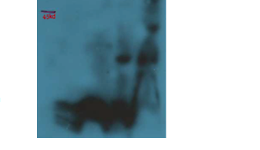 Western blot analysis of the di-methylated proteins from swine spleen cells lysate (lanes 4-5) and acid-extraction histones. (Lanes 2-3) with rabbit anti-di-methyl lysine antibodies (anti-MeK, ICP0701).