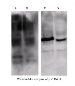 A: Cell expressed flag-tag p33 ING1, blot with antibody from other commercial source.