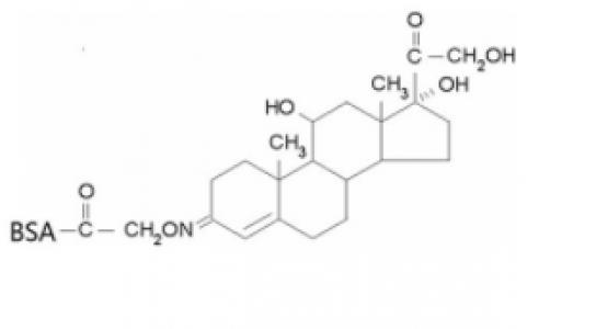 ICP1768 The hydrocortisone-3-carboxylmethyloxime (CMO) is linked to Bovine serum albumin (BSA), which is further conjugated with dBiotin. It can be used as an antigen in sandwich ELISA tests.