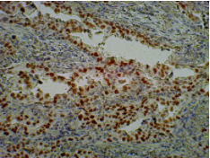 Immunohistochemistry staining of paraffin-embedded human lung cancer tissue with rabbit anti-PDL1 using product (ICP9988) as the 2nd antibody.