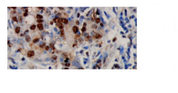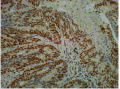 Immunohistochemistry staining of paraffin-embedded human tumor tissue with mouse anti-MLH1 using product (ICP9988) as the 2nd antibody.